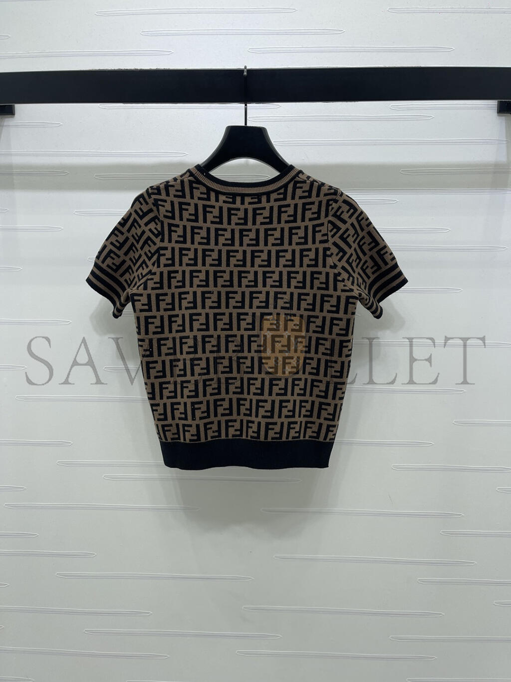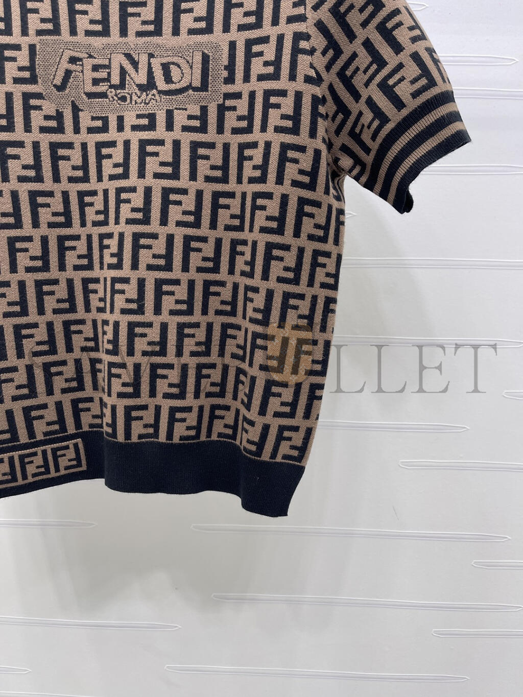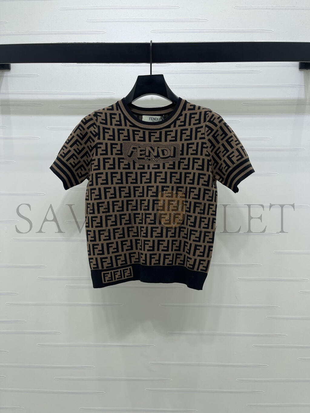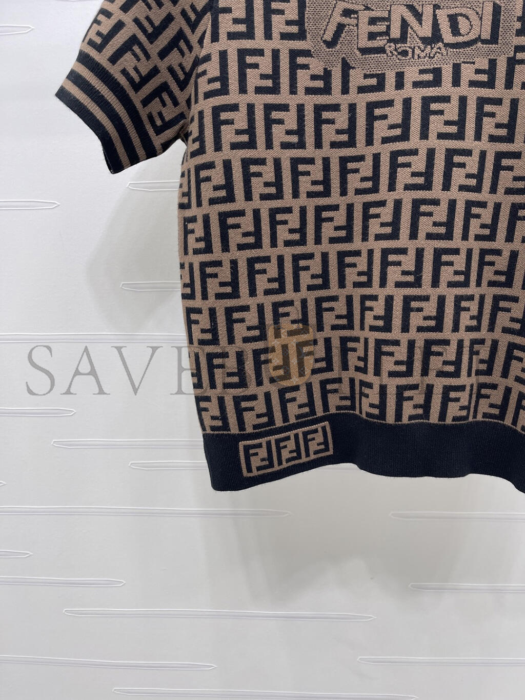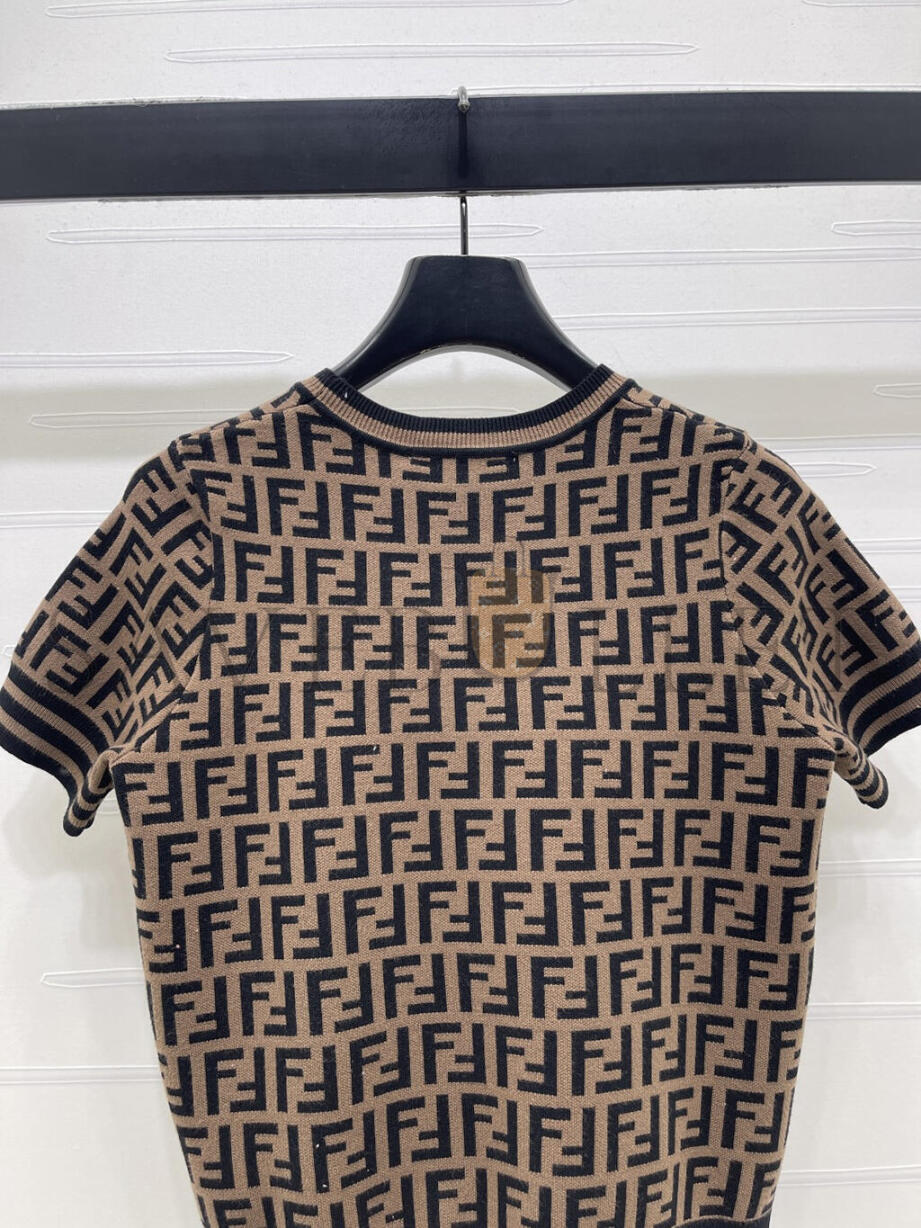 FENDI LETTER JACQUARD KNIT SHORT SLEEVE