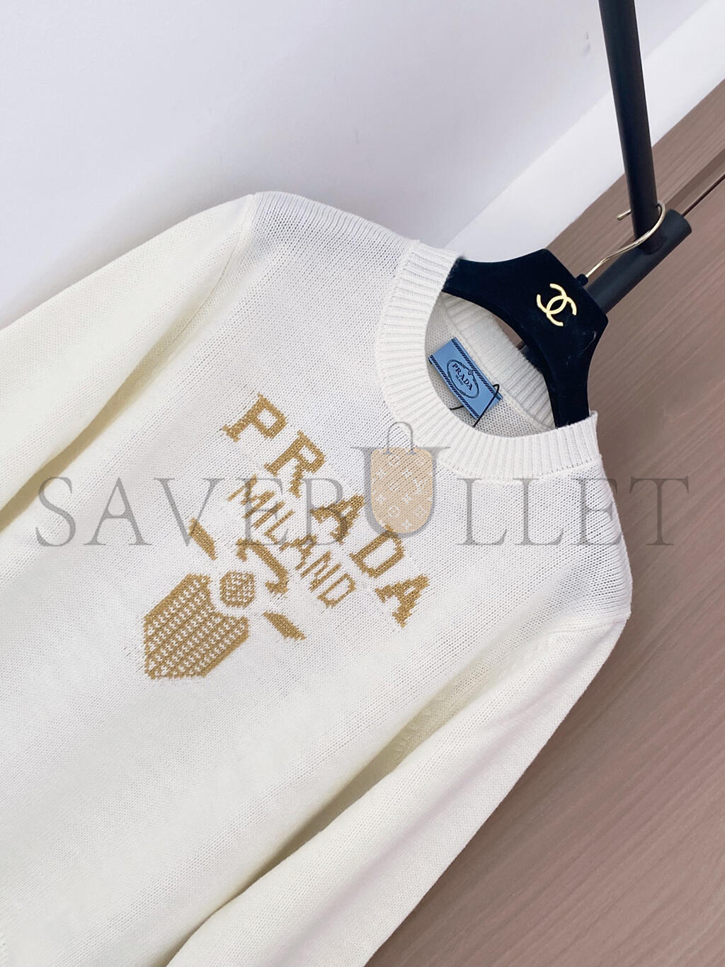 PRADA LOGO-INTARSIA CASHMERE SWEATER