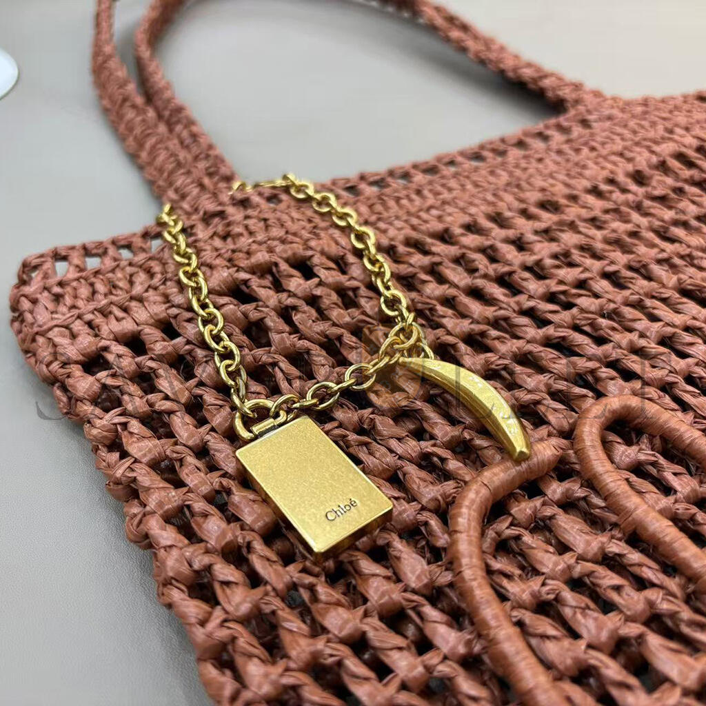 CHLOE SUMMER BANANA EMBELLISHED EMBROIDERED RAFFIA TOTE (29*25*8cm)