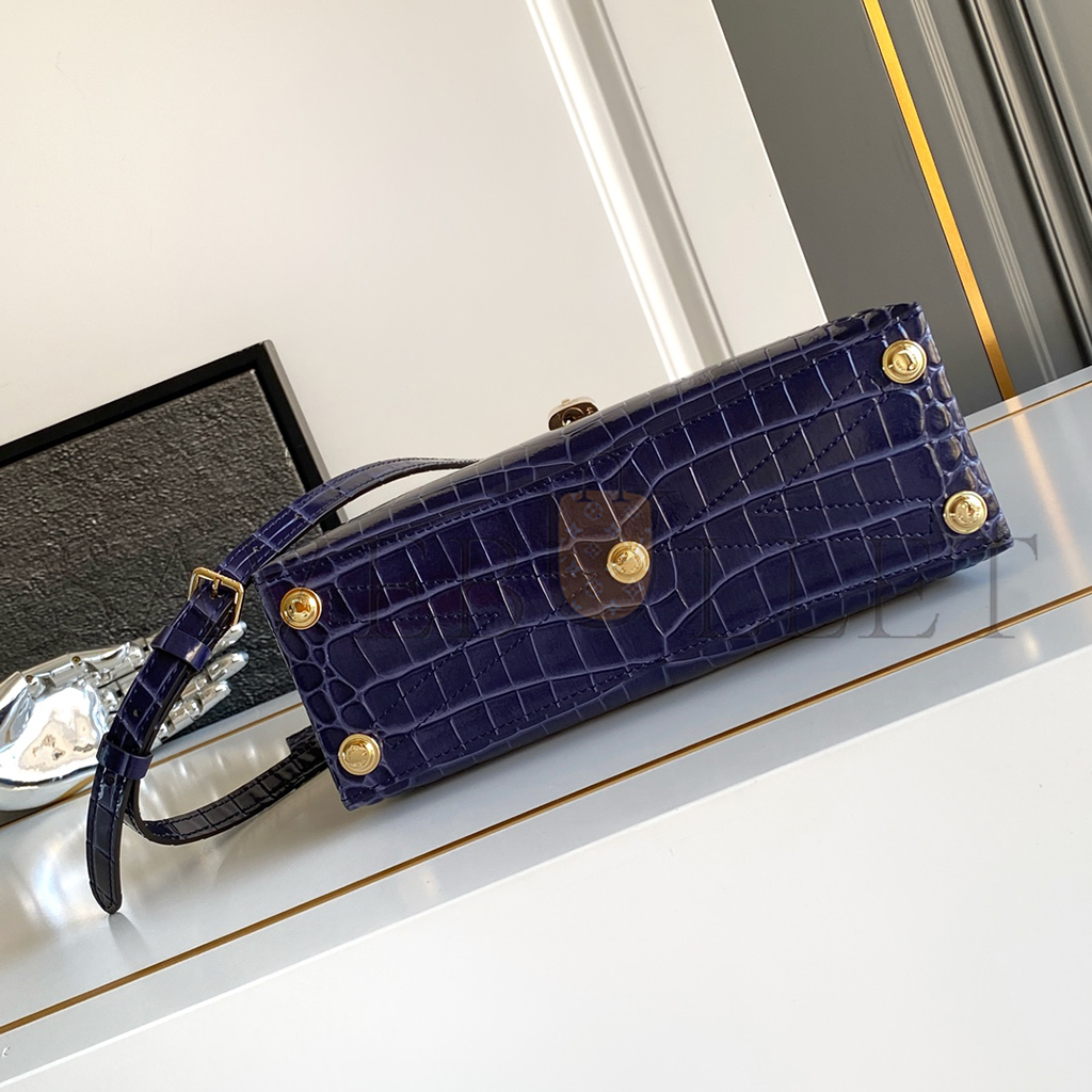 Denim bouclé shoulder bagShoulder strap with adjustable press studOne main compartmentZippered closureColor: Navy-White-SpaceHardware: Brass finishPro..