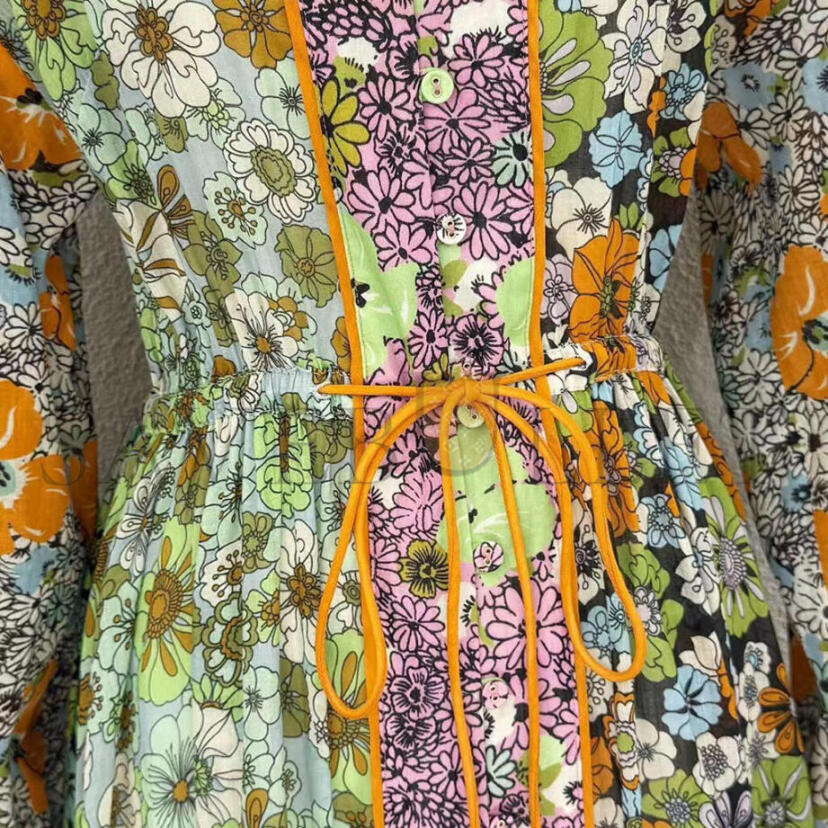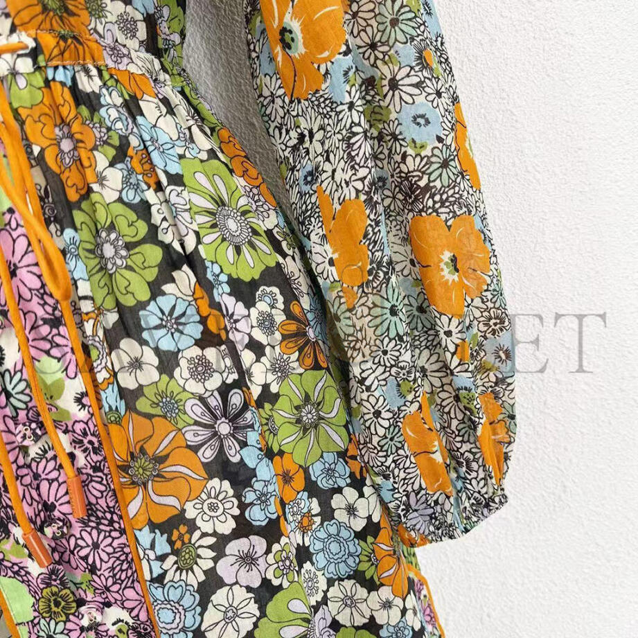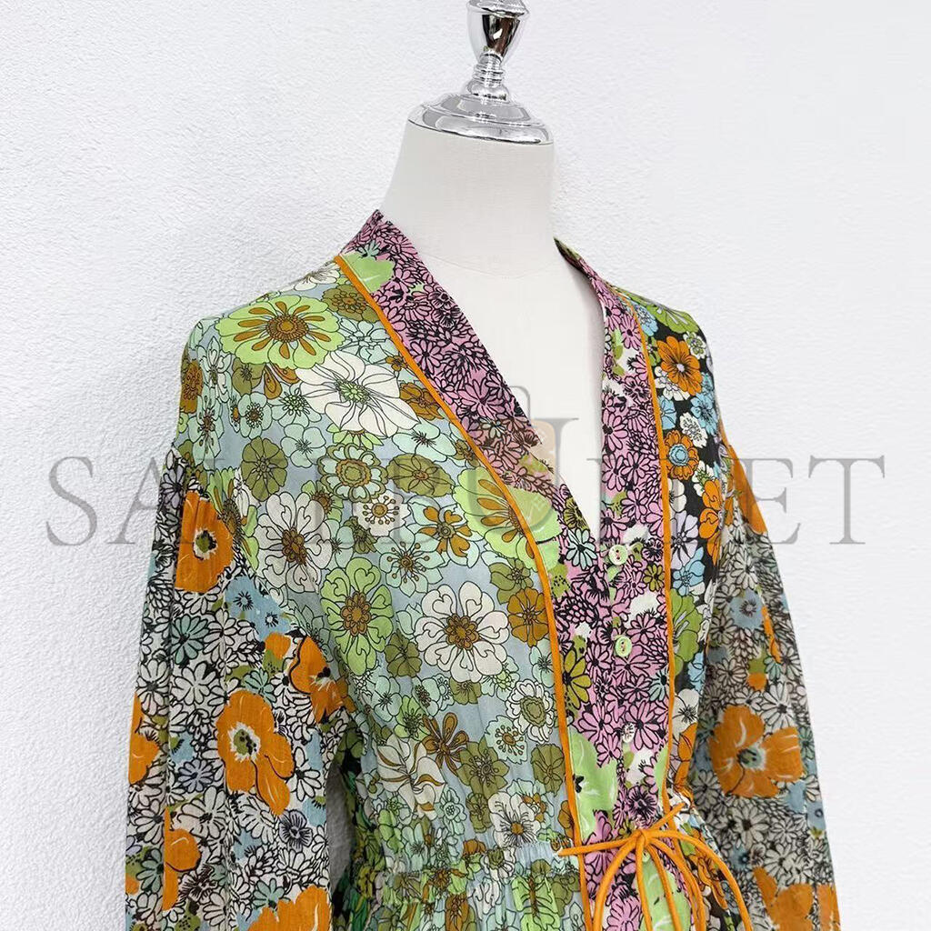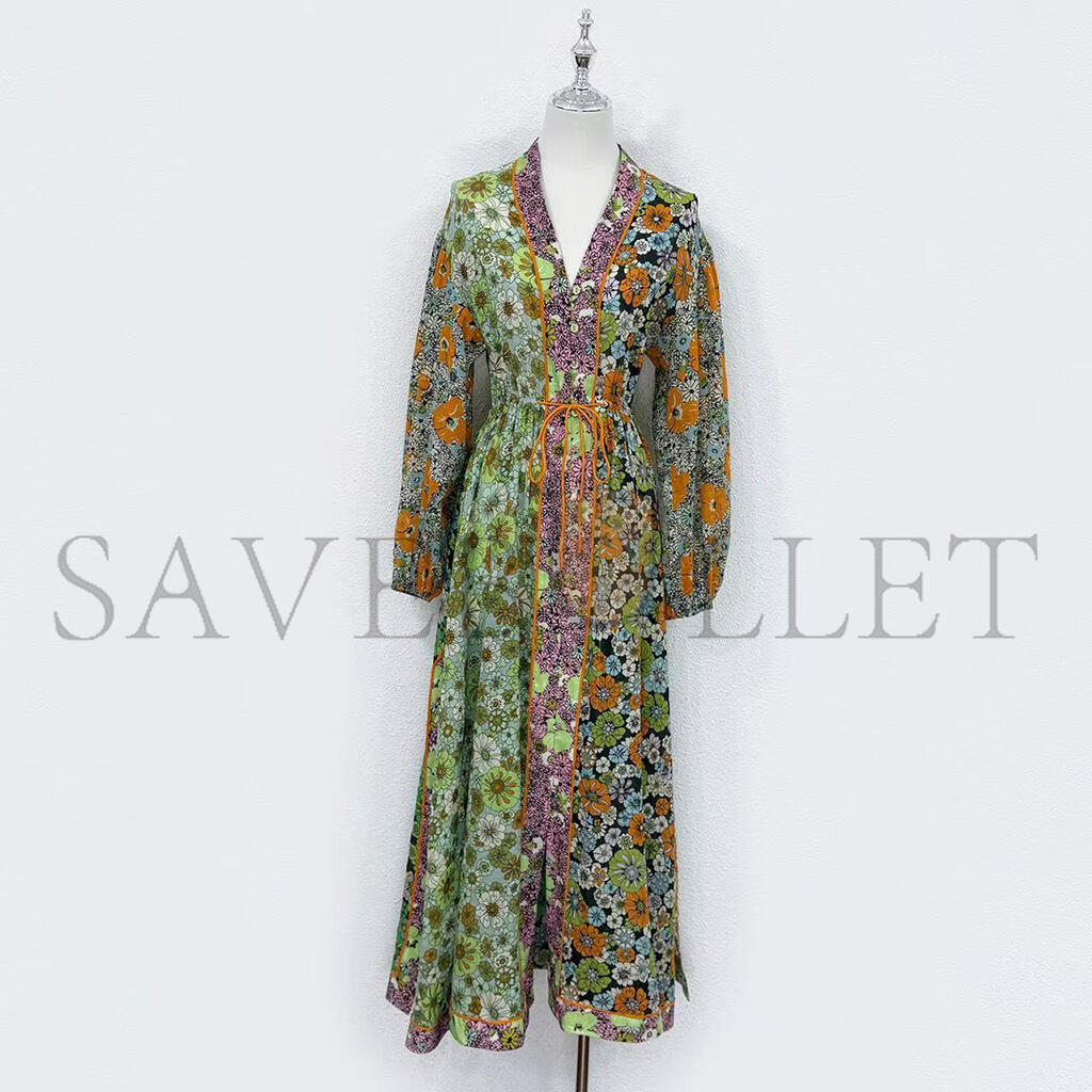 ALÉMAIS ORANGE BLOSSOM SPLICED MIDI DRESS 6376D